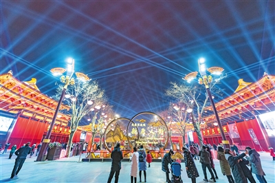 大明宮景區(qū)以互動體驗區(qū)、文創(chuàng)產品區(qū)、美食娛樂區(qū)3大主題,泡泡樹、球幕影院、奇趣妙音盒、彩虹跳、呼吸燈等8大互動體驗,送出奇妙的新年感受。