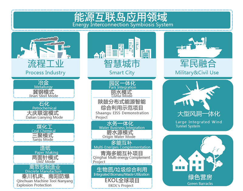 分布式能源智能綜合利用項目——能源互聯(lián)島方案,指分布在用戶端的能源綜合利用系統(tǒng),基于區(qū)域能源物料的供給稟賦,在滿足區(qū)域能源合理需求的前提下,采用互聯(lián)網(wǎng)思維,因地制宜、量體裁衣,綜合利用供給側(cè)能源條件及資源條件,通過技術(shù)、商業(yè)模式創(chuàng)新,提供水、冷、暖、電、氣、固廢處理(生活垃圾、餐廚垃圾及污泥等)等能源(量)全生命周期一體化綜合定制化解決方案,并利用智能管理和互聯(lián)網(wǎng)技術(shù)建立智慧管理系統(tǒng),從而提升資源循環(huán)和自我供給及處理能力,實現(xiàn)土地集約、設(shè)備集約、功能集約及運營集約。