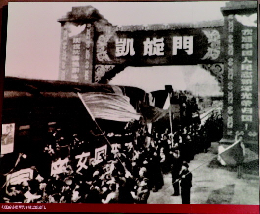 歸國(guó)的志愿軍列車駛過(guò)凱旋門。